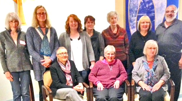 GRADUATING CLASS OF 2016. Back row L to R: Jane Phillips and Lisa Wochos, Lummi Island Congregational United Church of Christ, Lummi Island, WA; Becky Avery, Christ the Servant Lutheran, Bellingham; Becki Van Glubt, Beth Israel Synagogue, Bellingham; Glenda McLachian, First Presbyterian, Bellingham; Patricia and Miguel Arteaga, Restoration Fellowship, Oak Harbor, WA. Front rwo: Barbary Cheyney, Mt. Vernon, center.