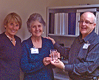 Jeanne (in photo, left) and Dotty (center) are active in their own faith communities and serve on the leadership team of the Health Ministries Network. Above, we see Dotty accepting her award from Dick Cathell, Director of HMN. The commendation which accompanies their award reads in part as follows.